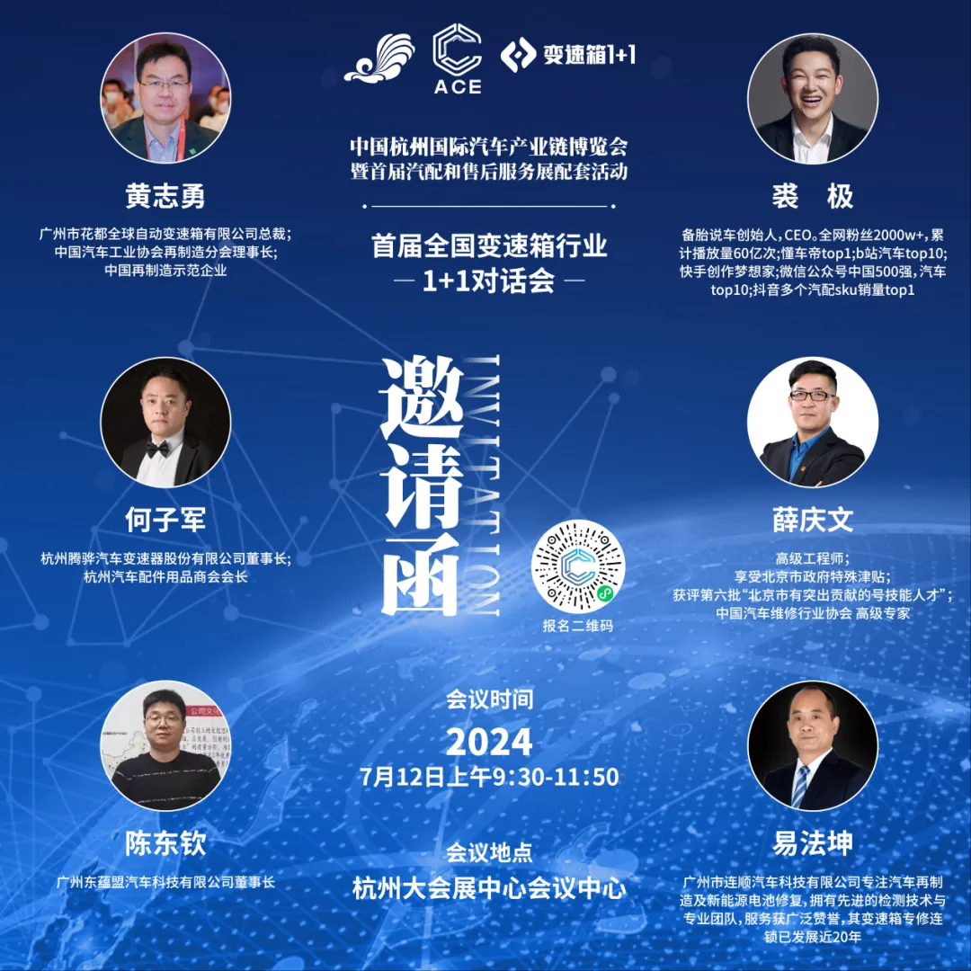 在本次活动展会期间,主办方还设置了部分精彩的汽车零部件产业链专项活动会议,积极响应本届展会活动主题:智能化、集成化、轻量化。7.12,由杭州腾骅汽车变速器股份有限公司主办,杭州市汽车用品商会及杭州市场营销协会大力支持的全国首届变速箱1+1大会,也将在会展活动期间同期启动,汇聚了全国变速箱行业的一众知名企业和行业大咖,将为参会嘉宾带来数字化浪潮下,变速箱维修企业的转型发展机会。